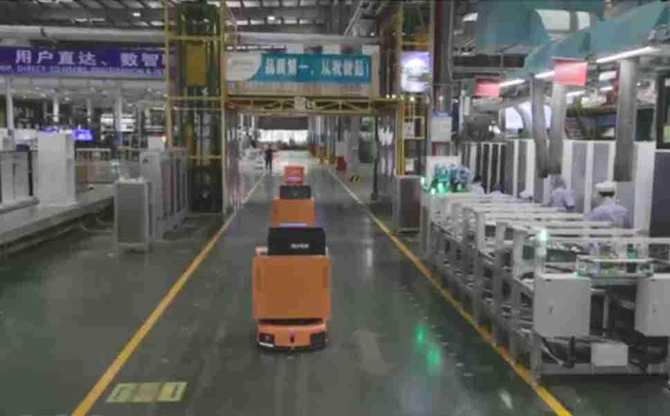 为车载冰箱物流配送打造的智能解决方案,,,,包含产中物流通过潜伏举升AMR搬运至线边,,,产后成品物流智能仓储,,流程包含产中物流智能齐套入库,,线边安灯叫料AMR智能配送至线边,,,,成品入库、、出库,,,,通过无人堆高车机器人,,,智能仓储管理替代人工作业管理,,,,实现更高存储、、、、更高效率、、、、更具柔性化的解决方案。。